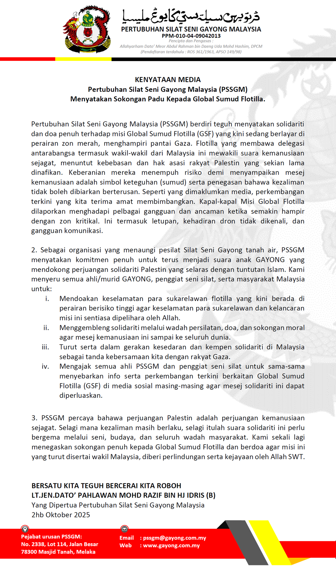 KENYATAAN MEDIA, SOKONGAN PADU PSSGM KEPADA GLOBAL SUMUD FLOTILLA 2025-10-022025-10-02Idris Saad Baca Lagi!